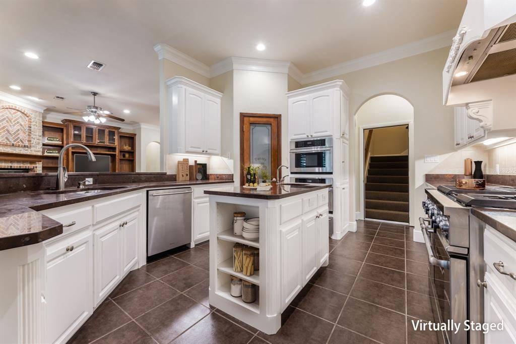 Quiet, country living at its best! This 3-3.5-3 custom blt home in gated Falling Water Addn is built on 3.23 acres backing to Squaw Creek. This lovely home has recently been repainted on exterior and majority of interior. Downstairs includes 3 bedrooms, 2.5 baths, study, family room, dining, kitchen, breakfast and large laundry with sink. Upstairs are two bonus rooms, full bath & access to 2 walk-in attic spaces. The kitchen features natl stone c-tops. walk-in pantry, island with 2nd sink, 6 burner commercial gas range with griddle and double ovens, blt-in microwave, additional oven, and warming drawer. The family room, dining & study have wood flooring while kitchen, laundry and baths have tile. Family room, kitchen, study, laundry & garage feature custom blt-in cabinets. Master bath has deep soaking claw foot tub, separate walk-in shower, 2 vanities, 2 walk-in closets. 3 car garage has underground storm shelter. Deck out back overlooks Squaw Creek with nearby stairs leading to creek.