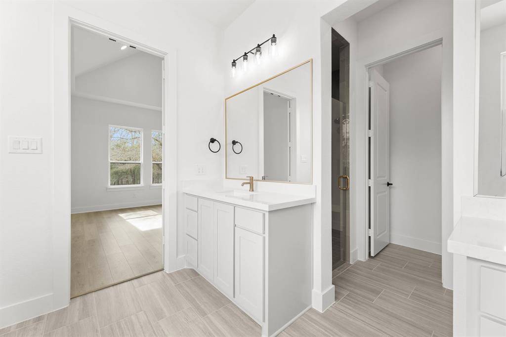 MLS# 21113458 - Built by J Houston Homes - Ready Now! ~ NEW JOHN HOUSTON HOME ON 1 ACRE LOT IN OAK CREEK RANCH IN MIDLOTHIAN. This Beautiful home features 4 Bedrooms, 3 Baths, a Gameroom, a Study, and an oversized 3-car garage. A vaulted ceiling connects the living to the dining and kitchen. The kitchen features extended cabinets to the ceiling and a window in the kitchen that looks out to our oversized covered patio. The cabinets are painted with quartz counter-tops, double ovens.. This home has engineered wood floors in the main living areas. The primary suite has a vaulted ceiling as well. The primary bath has a luxury oversized walk-in shower and free-standing bathtub with separate vanities and beautiful, custom framed mirrors.