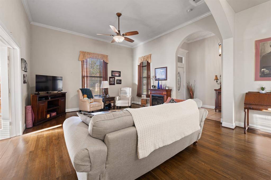 Stunning, fully updated corner-lot charmer on the Candle Walk Tour – 511 West Wilson. From the moment you arrive, this impeccable curb appeal draws you in: generous rock accents, iron fencing, double concrete driveways, and a fully fenced front yard with wraparound porch that begs for rocking chairs and sweet tea. Step inside to soaring high ceilings, gorgeous hardwood floors, blown-foam insulation (quiet + ultra energy-efficient), and a thoughtful floor plan that lives even better than it looks. The light filled living room flows effortlessly into the dining area , perfect for everything from casual weeknights to holiday gatherings. A second living space (currently a sunny home office) offers flexibility and an abundance of windows. The heart of the home is the magazine-worthy kitchen: custom cabinetry galore, granite counters, breakfast bar, and gas cooktop that will make any chef smile. Retreat to the serene primary suite with rich hardwood floors and a spa-like ensuite boasting a deep soaking tub and separate walk-in shower. A spacious guest bedroom, bright and cheerful, sits on the main level, while upstairs a charming bonus room serves beautifully as a 3rd bedroom, playroom, or creative studio. Out back, your private oasis awaits. Lounge under the expansive covered patio, grill on the open-air terrace, or cool off in the sparkling pool all surrounded by a tall stucco privacy wall with iron accents and a secure side-yard gate. A floored attic, on-demand tankless water heater, brand-new AC (March 2025), full sprinkler system, and a hidden storage shed behind a concrete wall handle all the practicalities so you don't have to. Rarely does a home this updated, this private, and this full of character come along especially one that has proudly been featured on the beloved Candle Walk Tour. Every upgrade has been thoughtfully chosen and meticulously maintained. This one truly feels like home the minute you walk through the door.