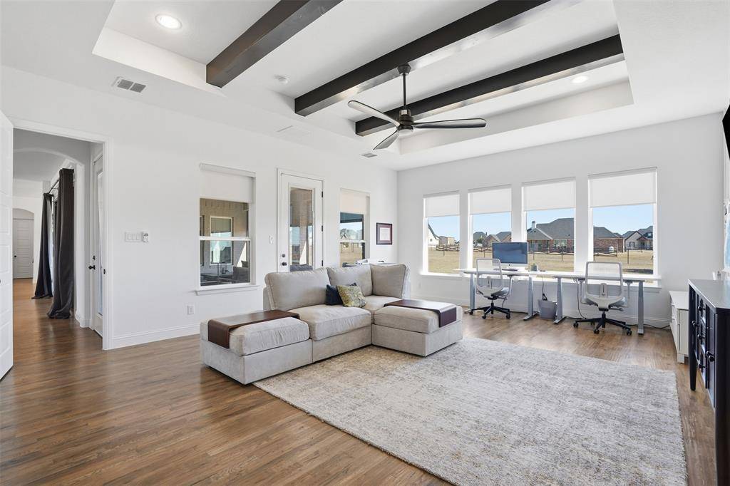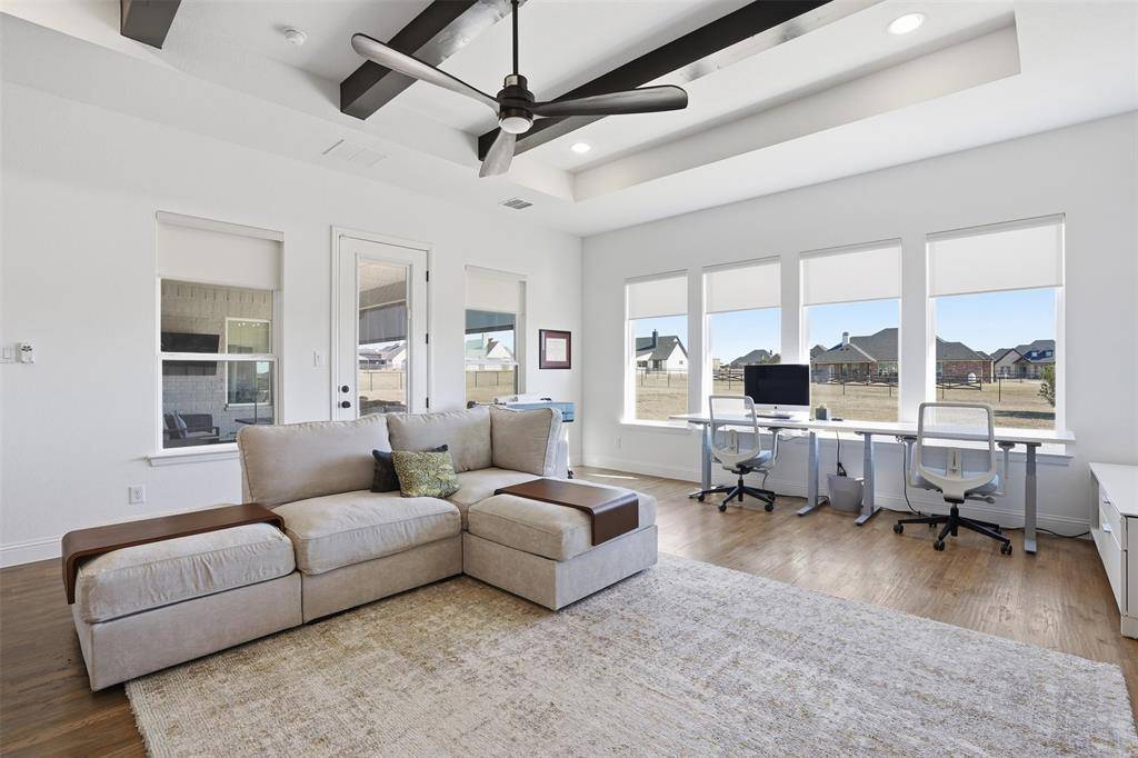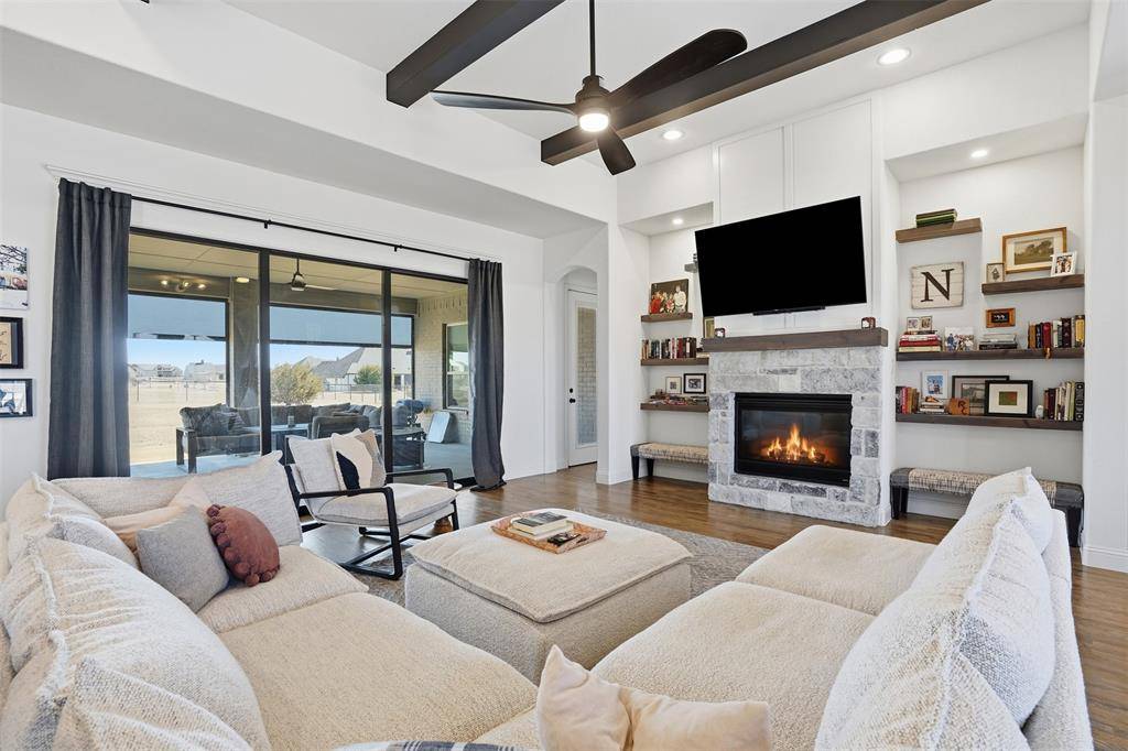 Stunning modern farmhouse in Godley ISD - thoughtfully designed for effortless living and unforgettable entertaining. This Double Rock home with an open-concept floorplan showcases a welcoming living area with built-ins flanking the fireplace and a generous dining room with room for a massive table-perfect for holiday gatherings and dinner parties.