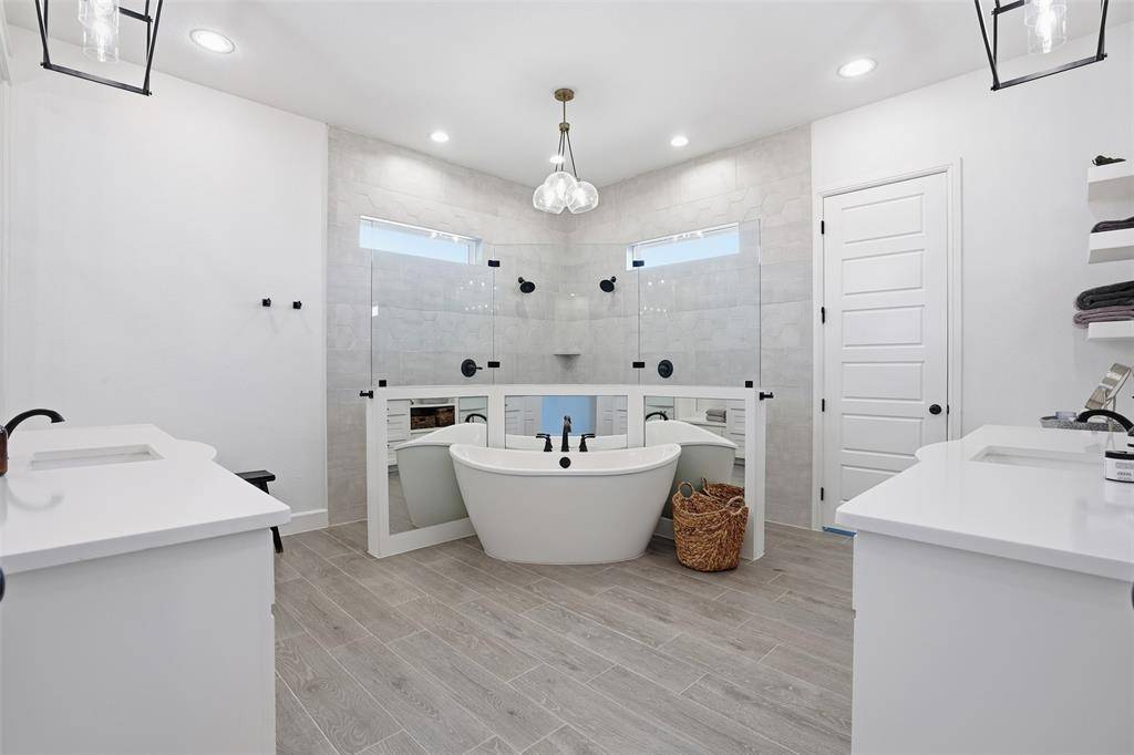 The chef's kitchen is a showstopper, featuring a large island and a giant hidden walk-in pantry with incredible storage to keep countertops clear and organization easy. The luxurious primary retreat is your private oasis with a spa-like bath offering dual vanities, a freestanding tub and a massive walk-in & walk-out shower.