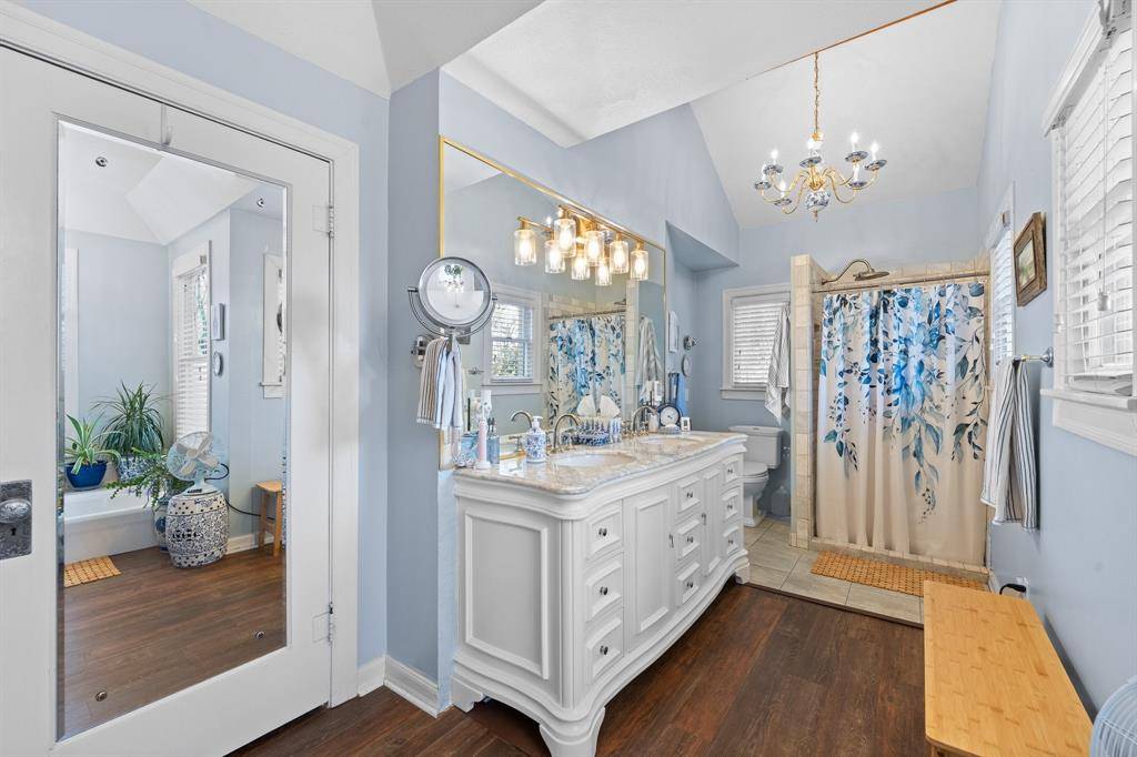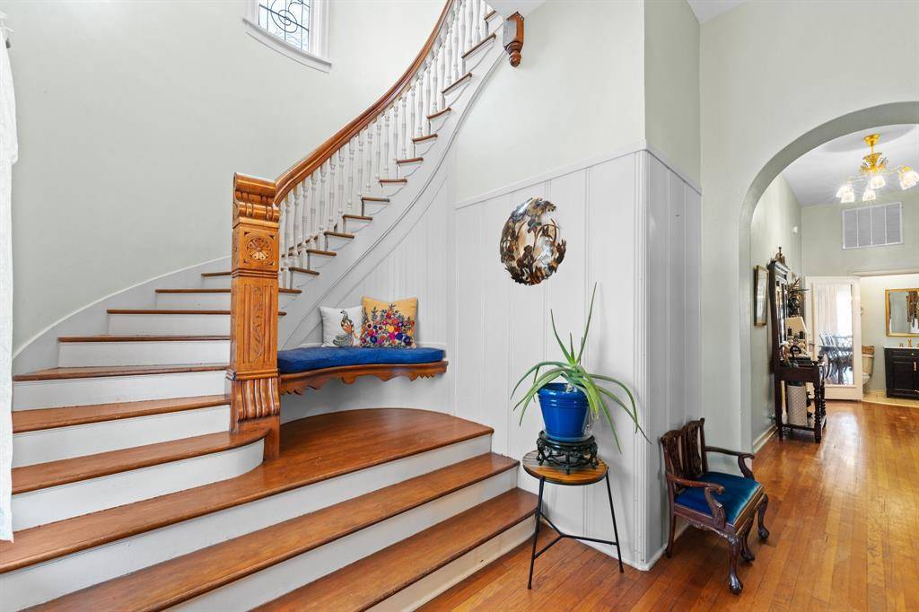 This home sits on nearly an acre in the heart of Cleburne, offering rare space and privacy with frontage on Prairie Avenue and the lot extending all the way to Second and Third Street. Step inside the stunning foyer, where a grand staircase and custom built-in bench create an unforgettable first impression. From the moment you enter, the stress of the day melts away. Glass French doors open into a spacious living room featuring a vaulted ceiling, beautiful decorative fireplace, and elegant leaded windows that fill the space with natural light. Another set of French doors leads to the expansive formal dining room, complete with a gorgeous chandelier and ample space to host family gatherings and dinner parties. A secondary staircase is conveniently located just off the dining room. The kitchen is positioned near the dining area and boasts abundant cabinetry, granite countertops, a double oven, and windows overlooking the picturesque backyard. The primary suite is located downstairs and serves as a private retreat, offering a cozy sitting area, access to a screened-in porch, and a stackable washer and dryer for added convenience. The en-suite bath features dual sinks, an updated vanity, a separate shower, and a spacious walk-in closet. At the top of the front staircase, you'll find a charming landing ideal for a quiet reading nook. Upstairs, all bedrooms are generously sized with hardwood floors, and two full bathrooms provide added comfort and convenience. Outside, the backyard is your own private paradise, complete with an in-ground swimming pool, mature trees, and plenty of space for entertaining or for kids and pets to run and play. The detached garage includes an upstairs apartment with new plumbing installed in 2025. The main house features two new HVAC systems (2024). With hardwood floors throughout much of the home and timeless architectural character at every turn, this exceptional property offers space, charm, and modern updates all in a prime location.