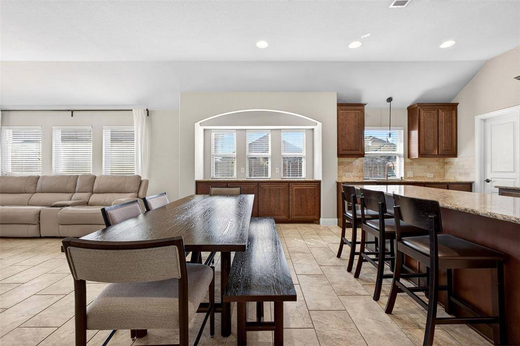 The spacious open-concept layout is ideal for both everyday living and entertaining. The kitchen serves as the heart of the home, featuring granite countertops, stainless steel appliances, a large center island, ample cabinetry, and a walk-in pantry. It opens seamlessly into the main living area, creating a warm and inviting space for gatherings.