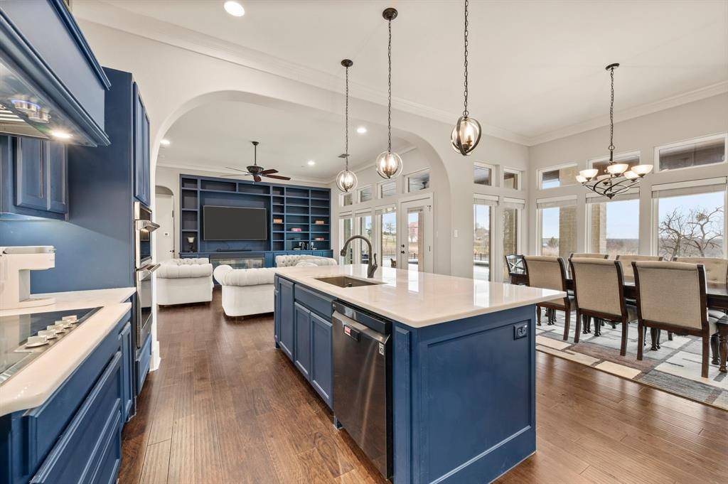 Welcome to this absolutely gorgeous, MOVE-IN-READY home on over an acre in the highly desirable Lake Ridge community, just minutes from Valley Ridge Park, TangleRidge Golf Club, local schools & Joe Pool Lake. One of the standout features of this newer construction custom home is the peaceful water views and breathtaking sunset backdrops you'll enjoy every evening! This spacious 4-bedroom, 3-bath residence is thoughtfully designed for both everyday living and entertaining. The stunning open concept kitchen boasts a massive island, custom blue cabinetry, stainless steel appliances, double ovens, and built-in cooktop with pot filler. Elegant herringbone tile backsplash and statement pendant lighting create a modern yet timeless feel. The primary suite offers generous walk-in closets and a comfortable escape at the end of the day. The living room and back patio are pre-wired for a speaker system, creating seamless indoor-outdoor living. As you step outside to your private backyard retreat featuring a covered patio, sparkling pool, and relaxing spa you will enjoy the perfect setting for gatherings or quiet nights at home. The garage includes an EV plug, and the extended driveway provides ample parking for family and guests. There is also a separate garage door perfectly suited for a golf cart or extra storage! Beautifully maintained and ideally located, this home blends comfort, convenience, and stunning views into one exceptional lifestyle opportunity!