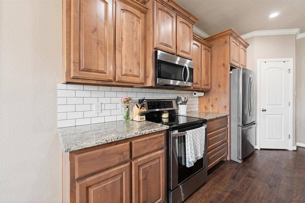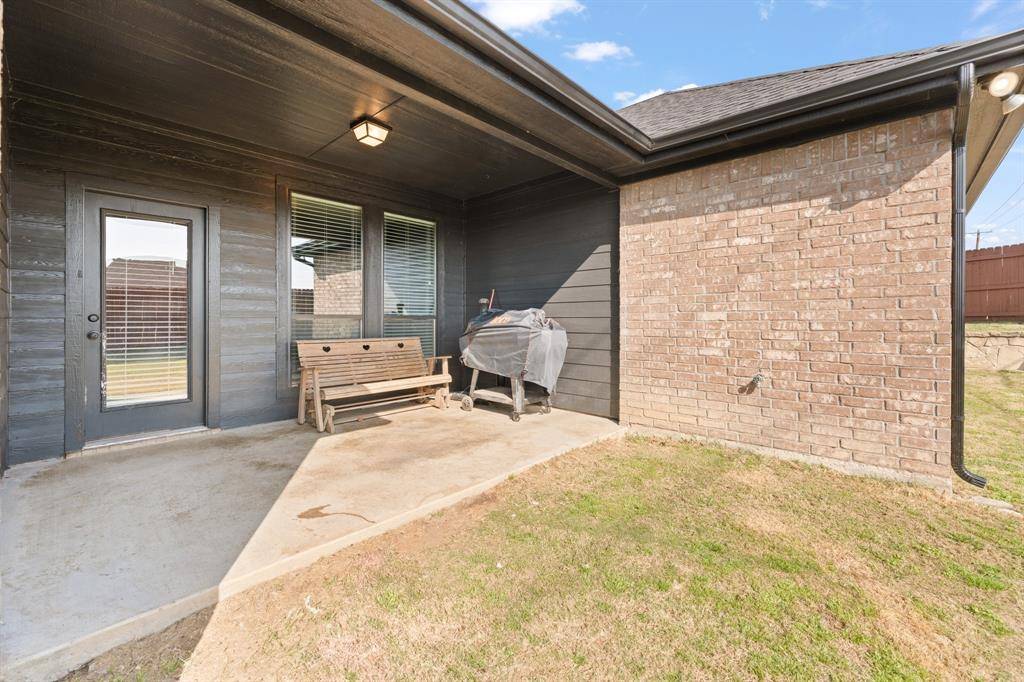 This beautiful custom-built home located in a desirable neighborhood just on the edge of town is one that you will not want to miss out on. There is so much more than meets the eye on this home starting with the opportunity to have a very rare low interest rate with an assumable loan. This custom build offers granite counters throughout, engineered hardwood flooring, custom wood cabinets, large kitchen island bar, custom built ins throughout, beautifully rocked wood burning fireplace, very large walk-in closets in every bedroom, tall ceilings, spray foam insulation, large garage space, rain gutters, nice new roof installed June 2025. This split bedroom layout offers a spacious primary bedroom, nice walk-in shower along with soaking tub and huge primary closet space. Step out the backdoor to find a great sized covered patio. The many perks you get with the location of this home include the short 2-minute drive to the Cleburne Golf Links and Lake Pat, along with being located in the Gerard Elementary School District. Another added benefit to this small neighborhood is the sidewalks that offer a great place for walking, riding bikes or evening jog.