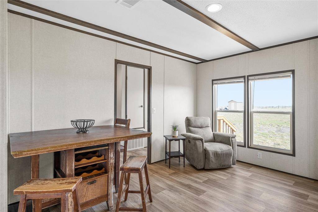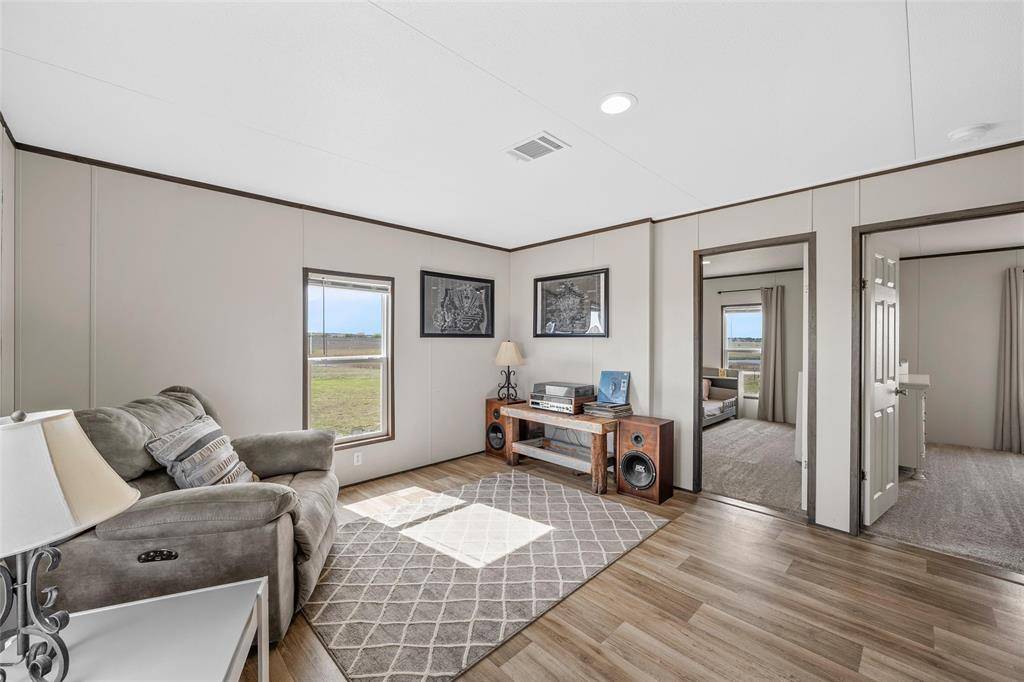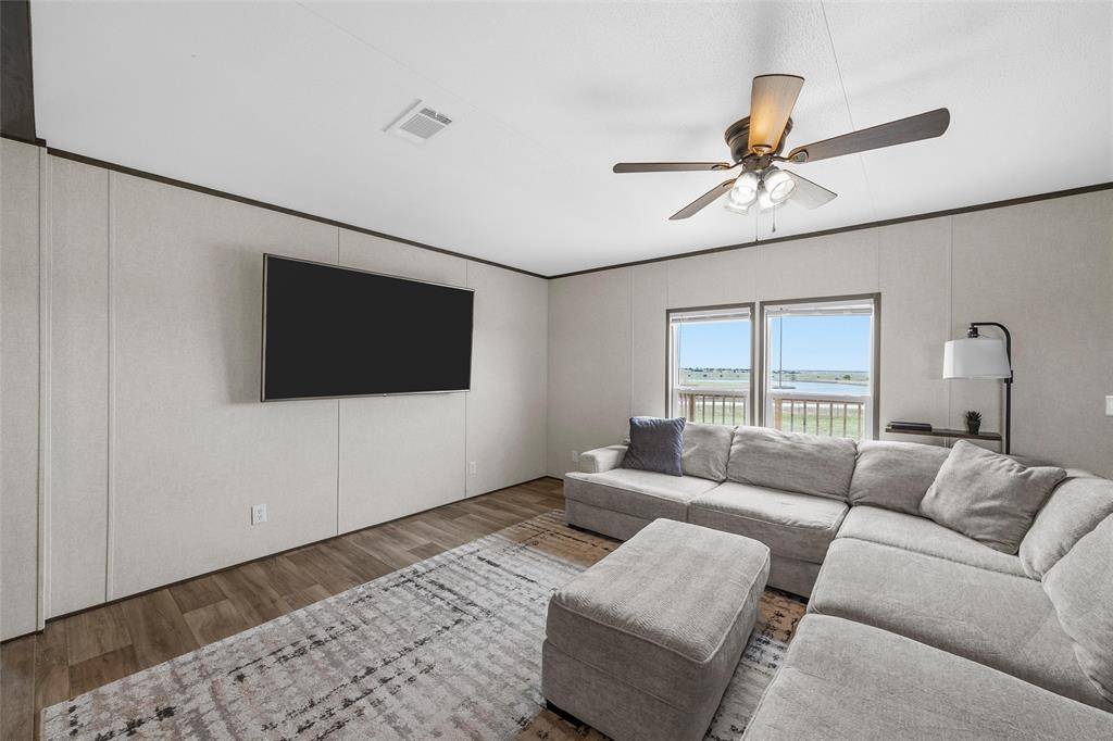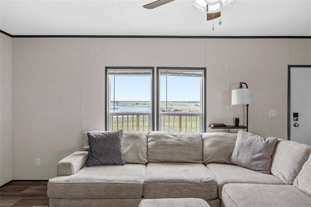 If you've been waiting for some land, this might be it! 20 acres, fully fenced, ready for horses, with a pond and room to breathe. This property is perfectly set up with an iron pipe entry fence, crossed fenced, corrals, two outbuildings. Also cross-fenced with two separate entrances, including a secondary access point from an adjacent tract. Power and water are available at the road, offering excellent flexibility if divided into two separate properties. Currently under ag exemption. The house is in immaculate shape with 3 beds, 2 baths, and two living areas. The best part? Stunning views of the conservation lake from the oversized front porch wood deck, living room, and primary suite. Priced below its recent $465K appraisal—step into an incredible opportunity to gain instant equity. Low taxes, little traffic, and total privacy—just the way country living should be.