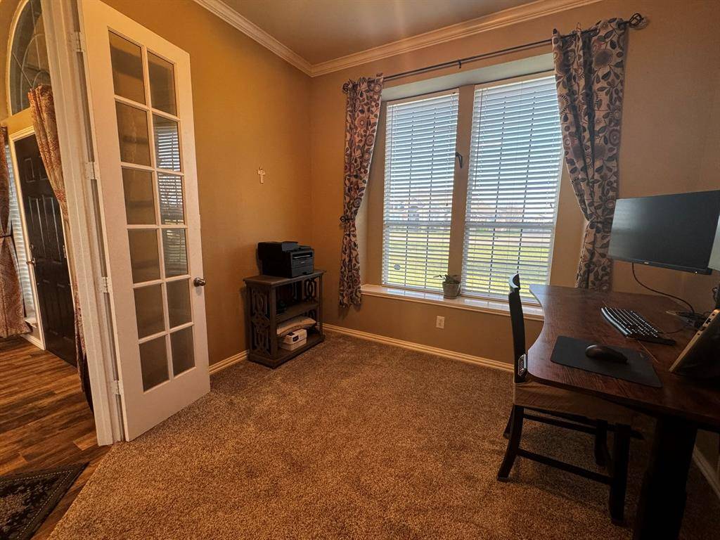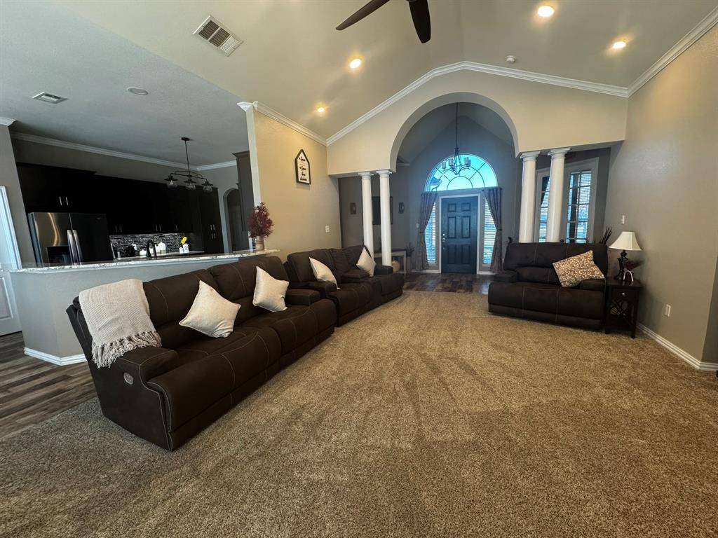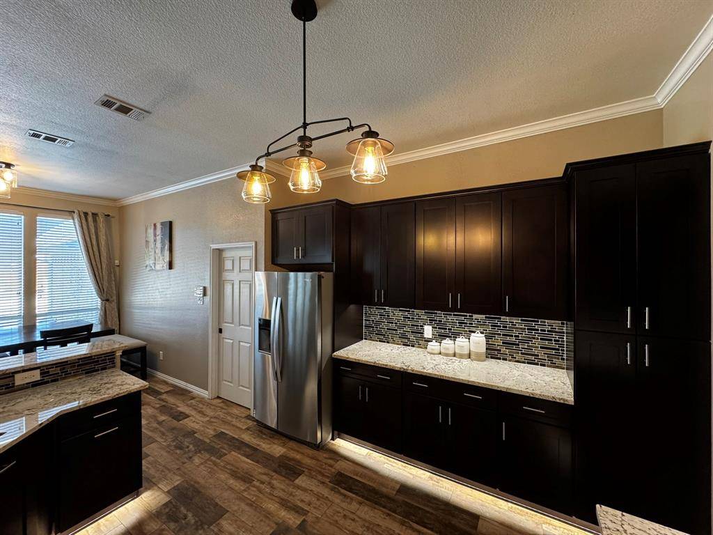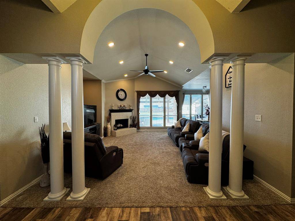 Step inside to a grand living room anchored by 12-foot ceilings, decorative beams, and a cozy wood burning fireplace that creates a warm and inviting space. The recently remodeled kitchen features stunning granite countertops, glass tile backsplash, under-cabinet and toe-kick lighting, and new tile flooring throughout. The thoughtful floor plan includes 4 bedrooms, 2 bathrooms, and a dedicated office ideal for working from home.