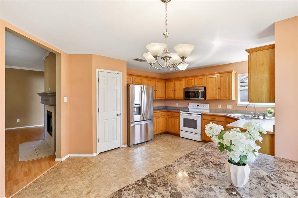Welcome to Creekside Addition – a well-established Burleson neighborhood just steps from the Recreation Center and Bartlett Park Sports Complex. This 3-bedroom, 2-bathroom brick and frame home offers 1,526 SF of single-story living on a 0.165-acre lot, complete with a 2-car garage, fireplace, and covered backyard patio. -- Fresh paint and touch-ups throughout with a mix of carpet, ceramic tile, and laminate flooring. The kitchen is fully equipped with electric range, microwave, dishwasher, and disposal. --