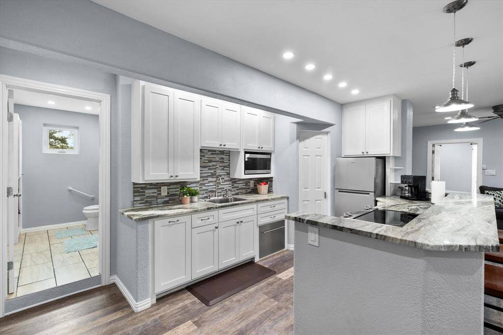 Check out this gorgeous lakefront Granbury home featuring a 4-3-2 layout and a private guest apartment perfect for a mother-in-law suite, extra living space, or rental income. It's loaded with modern upgrades like LED lighting, stainless steel appliances, custom tile backsplash, walk-in pantry, granite countertops, hardwood cabinets, dry stack rock accents, rain showerheads, bamboo and tile flooring, crown molding, a utility closet with the main electrical panel, an extended stained and stamped driveway, spray foam insulation, a tankless water heater, zoned HVAC, a water manifold system, and decked attic storage. Recent improvements include a new septic system and a Class 4 roof added in 2022. Just a short stroll to the community clubhouse, boat ramp, and pool, this home offers the best of lake living plus the convenience of a home office. Motivated seller—open to all offers.
