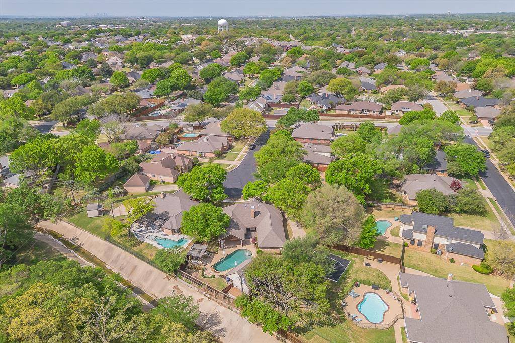 **MEGA OPEN HOUSE APRIL 11 FROM 1-3PM with food, drinks and prizes!!!** Rare find in Bedford under $700K offering an ideal setup for multigenerational living! This beautifully maintained single-story home sits on a quiet cul-de-sac near the Colleyville border and features 3 bedrooms, 3 full baths, and 2,518 sq ft with high ceilings, two spacious living areas, and generously sized bedrooms. In addition, a detached pool house with 1 bedroom and 1 full bath adds approximately 300 sq ft of versatile living space, complete with plumbing and electricity which is perfect for guests, a private office, or extended family. The home is move-in ready and includes an extended driveway plus an outdoor retreat that's hard to find at this price point, featuring a sparkling saltwater pool, two covered patios, and an outdoor kitchen designed for entertaining. Prime location near highly rated schools, parks, shopping, dining and more. 1-0 lender paid buydown offers additional savings on monthly payments for your first year or you can choose an upfront closing cost credit!