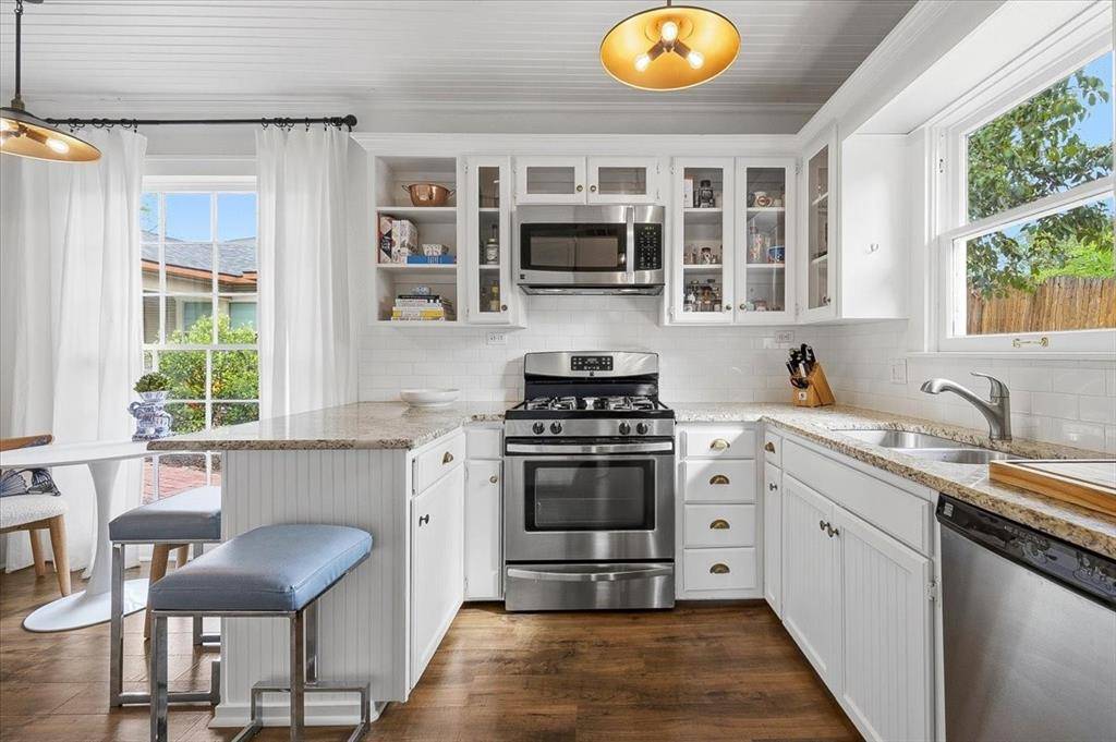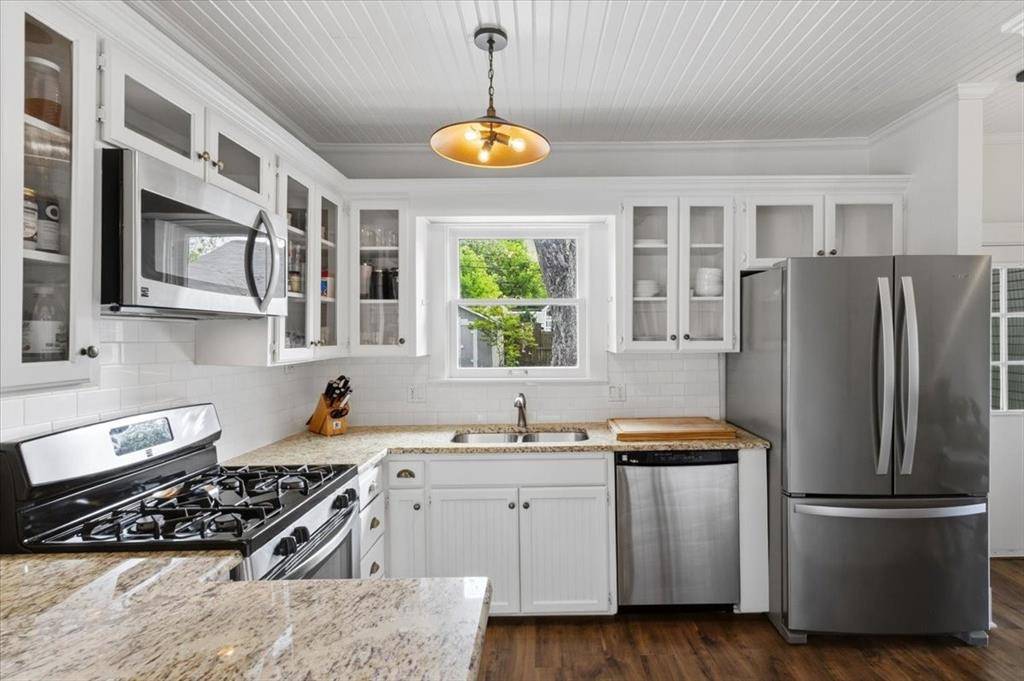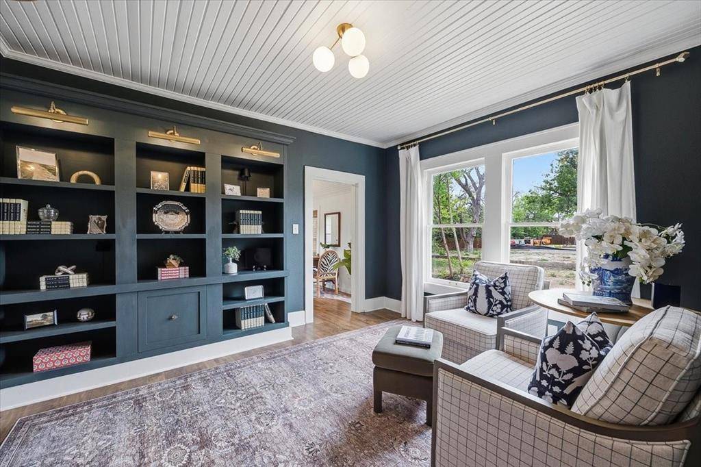 Charming home in the heart of Arlington Heights, conveniently located near Camp Bowie. This immaculately maintained residence features fresh paint, new carpet, abundant storage, and light-filled spaces throughout. Upon entry, you are welcomed into an inviting living and dining area filled with natural light from numerous windows. A wet bar seamlessly serves both the main living area and the cozy den with built-in cabinetry, creating ideal spaces for gatherings or quiet relaxation. The 8.5-foot ceilings and expansive windows enhance the sense of openness and comfort and make a perfect environment for entertaining. The kitchen is thoughtfully updated with stainless steel appliances, designer lighting, and stylish hardware. It opens to a charming breakfast nook and includes a butler's pantry for added convenience. A beautiful garden room with brick pavers, vaulted ceilings, and designer chandeliers offers a versatile space to have your morning coffee or play Mahjong. Additional highlights include a library with built-ins, a dedicated office with sitting area and custom desk and cabinetry, and a spacious primary suite featuring a remodeled bath with soaking tub, separate shower, and three closets. Filled with character and warmth, this home offers a variety of inviting spaces to enjoy.