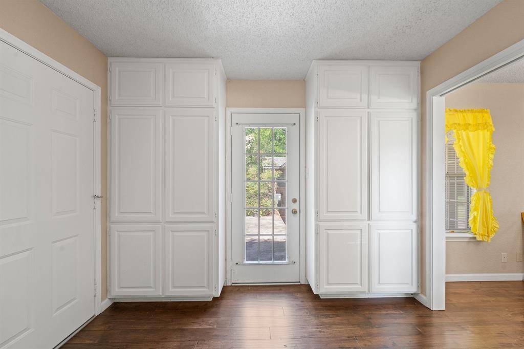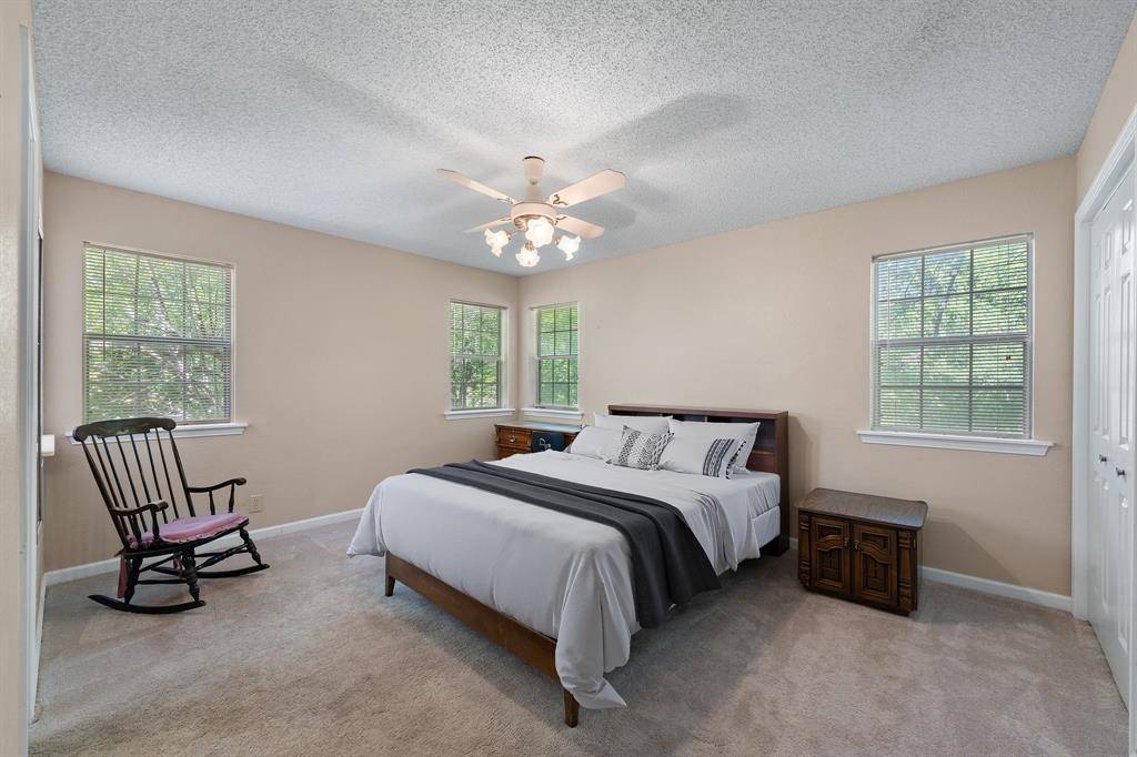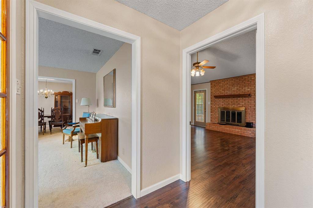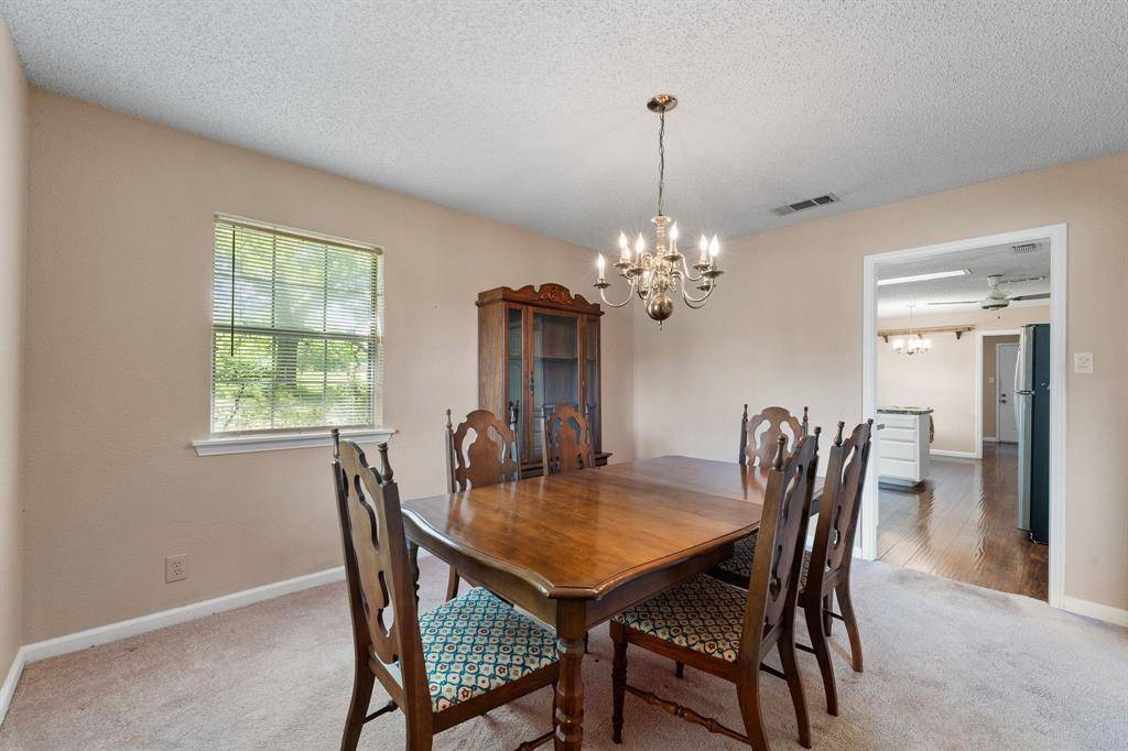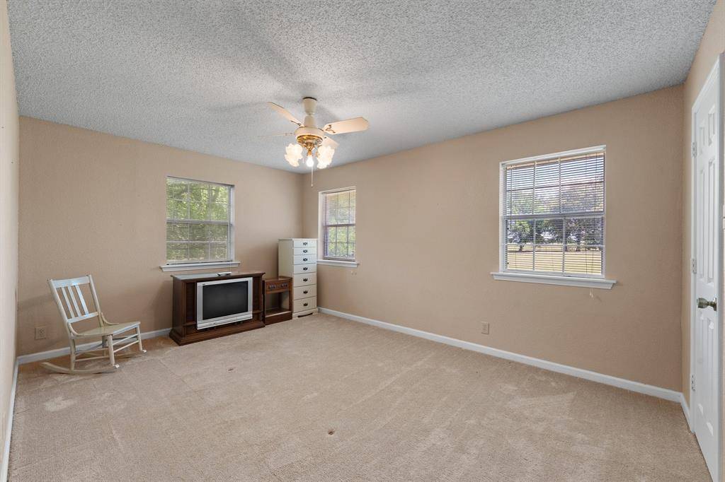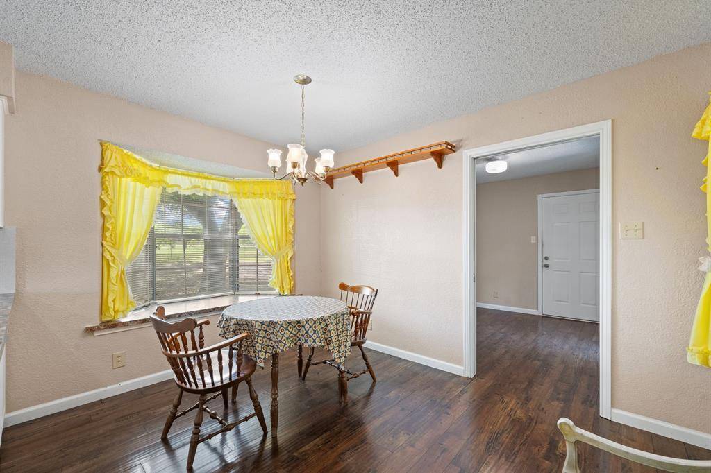 This exceptional property offers stunning acreage adorned with mature oak trees, creating a truly picturesque setting. Custom-built and lovingly maintained by its original owner, the home welcomes you with a spacious front porch perfect for a porch swing and your morning coffee. Inside, the inviting entryway provides a warm first impression and includes a convenient coat closet. Just off the entry are formal living and dining rooms, ideal for entertaining family and friends. The cozy family room features a charming brick fireplace, adding warmth and character to the space. The bright and sunny kitchen, along with the adjoining breakfast area, makes everyday living feel special. You'll find abundant cabinetry, generous countertop space, and a window above the sink that brings in natural light. The breakfast area is highlighted by a large bay window, perfect for enjoying peaceful views of the property. The spacious primary bedroom offers comfort and functionality with two closets, while both guest bedrooms are oversized and include walk-in closets. Storage is plentiful throughout the home, including a well-appointed laundry room. The land itself is a rare find featuring a beautiful mix of mature trees and open pasture, ideal for horses or grazing livestock. Additional amenities include a workshop, storage building, and even a charming windmill once used to water the garden. The yard is filled with a variety of flowers that will delight the new owner season after season. Recent updates include new flooring in much of the home and a brand-new roof installed in March 2026. Another bonus is this property is located in Grandview ISD.