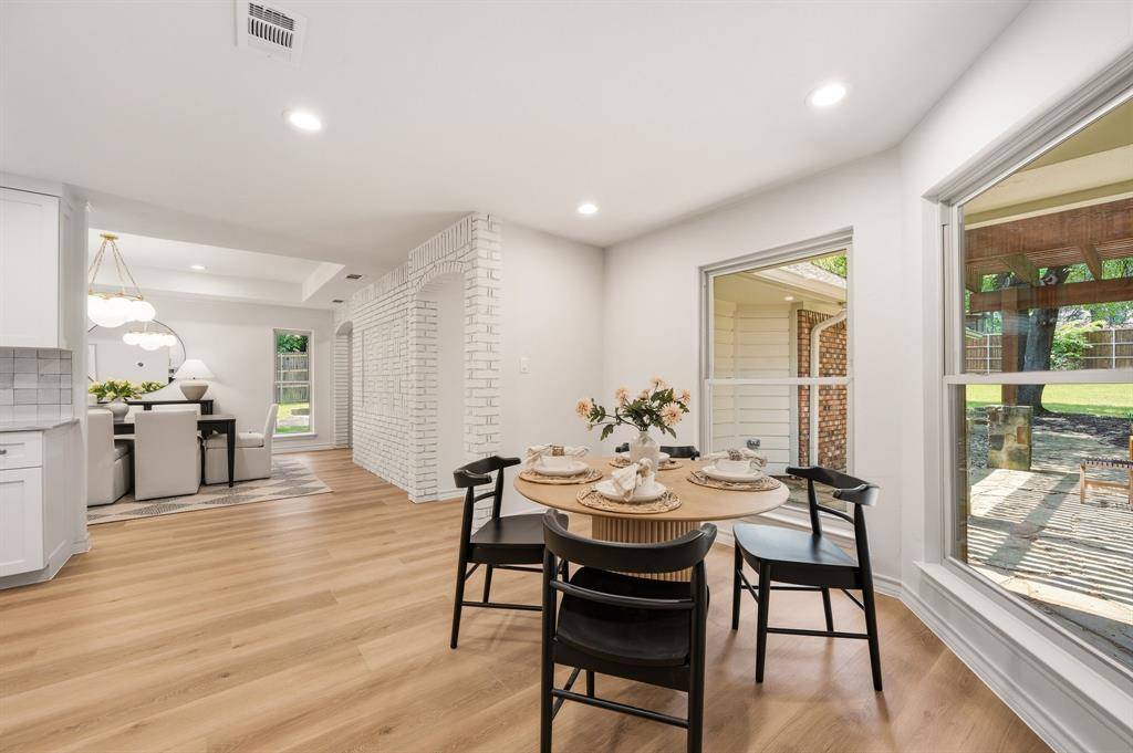 Located in beautiful northeast Keller, this fully updated home sits on nearly an acre and offers exceptional backyard privacy with an automatic gated driveway and no HOA restrictions. Inside, the home features four spacious bedrooms arranged in a desirable split floor plan, along with three full bathrooms, offering both comfort and functionality for everyday living. The oversized primary suite is thoughtfully positioned for privacy, while the secondary bedrooms provide flexibility for various needs. The main living room serves as a welcoming centerpiece, highlighted by a beautiful brick fireplace, vaulted ceiling, and large windows that frame views of the private backyard. Natural light fills the space and creates an inviting atmosphere ideal for relaxing or gathering with family and friends. The fully remodeled kitchen has been thoughtfully designed with both style and functionality in mind. It features custom cabinetry, a Dacor gas range and addition built-in oven, walk-in pantry, and a cozy breakfast nook, creating a comfortable space. The layout flows seamlessly into the main living areas, making it ideal for entertaining. Just off the kitchen, the oversized dining room offers abundant natural light, a dedicated bar area, and plenty of room for hosting including a wet bar. The home includes a two-car garage with a connected, enclosed storage space for additional organization and functionality. The expansive lot provides endless possibilities for outdoor living, whether enjoying the privacy of the backyard, creating a future pool oasis, or simply appreciating the extra space rarely found in this area. Conveniently located with quick access to Highway 114 and Southlake Boulevard (1709), the home also feeds into highly rated Florence Elementary and Keller High School, making it an excellent opportunity to enjoy both a prime location and top-rated schools.