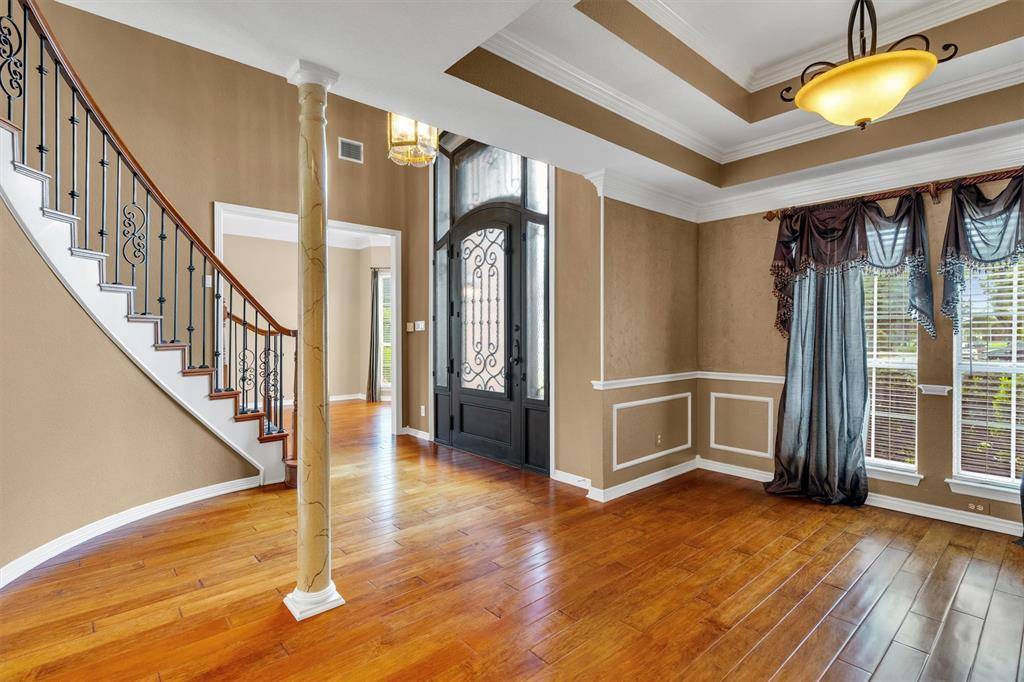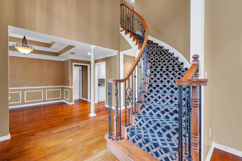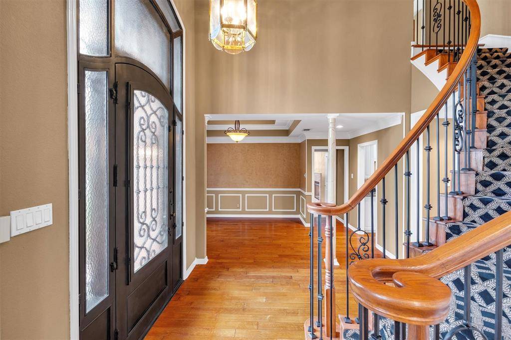 Designer Details & Refined Interiors: From the moment you arrive, the custom front door sets a tone of sophisticated charm. Step inside to find the centerpiece of the home: a breathtaking custom staircase that serves as a functional work of art.